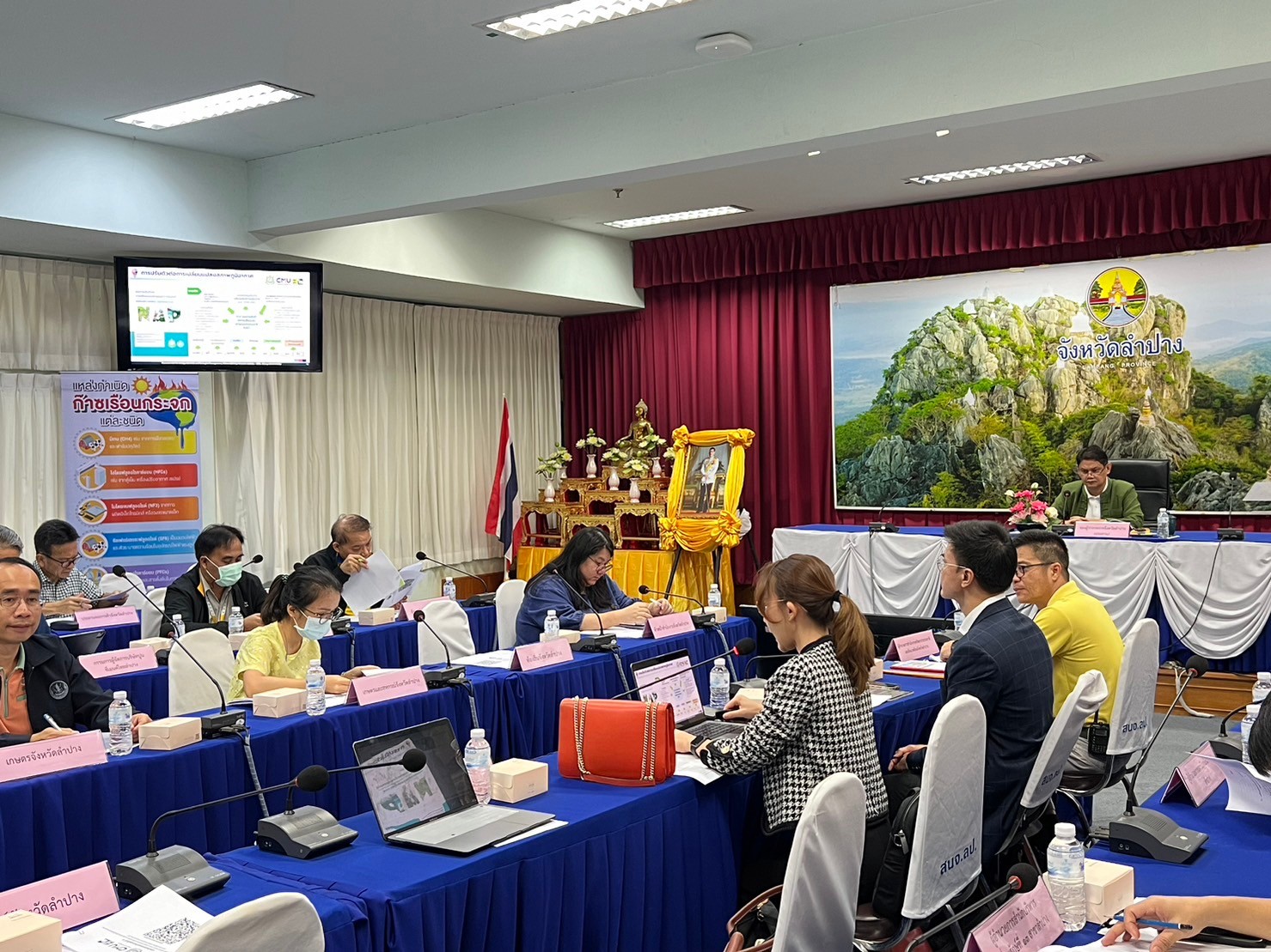 ☘️ การประชุมเพื่อรับทราบผลการดำเนินโครงการ ทั้งนี้ รศ.ดร.เศรษฐ์ สัมภัตตะกุล รักษาการผู้อำนวยการสำนักบริการวิชาการ และหัวหน้าหน่วยวิจัยเพื่อการจัดการพลังงานและเศรษฐนิเวศ สถาบันวิจัยวิจัยพหุศาสตร์ มหาวิทยาลัยเชียงใหม่ พร้อมด้วย ดร.รัตชยุดา กองบุญ รองหัวหน้าหน่วยวิจัยฯ และนางสาวจิรนันท์ รอดเพราะบุญ นักวิจัย ในฐานะที่ปรึกษาโครงการฯ นำเสนอผลการวิเคราะห์มาตรการปรับตัวต่อผลกระทบจากการเปลี่ยนแปลงสภาพภูมิอากาศของจังหวัด และผลการคัดเลือกมาตรการปรับตัวต่อผลกระทบจากการเปลี่ยนแปลงสภาพภูมิอากาศเพื่อจัดทำแผนปฏิบัติการปรับตัวต่อผลกระทบจากการเปลี่ยนแปลงสภาพภูมิอากาศของจังหวัด เพื่อพิจารณานำไปสู่การจัดทำร่างแผนปฏิบัติการปรับตัวต่อผลกระทบจากการเปลี่ยนแปลงสภาพภูมิอากาศของจังหวัดลำปาง