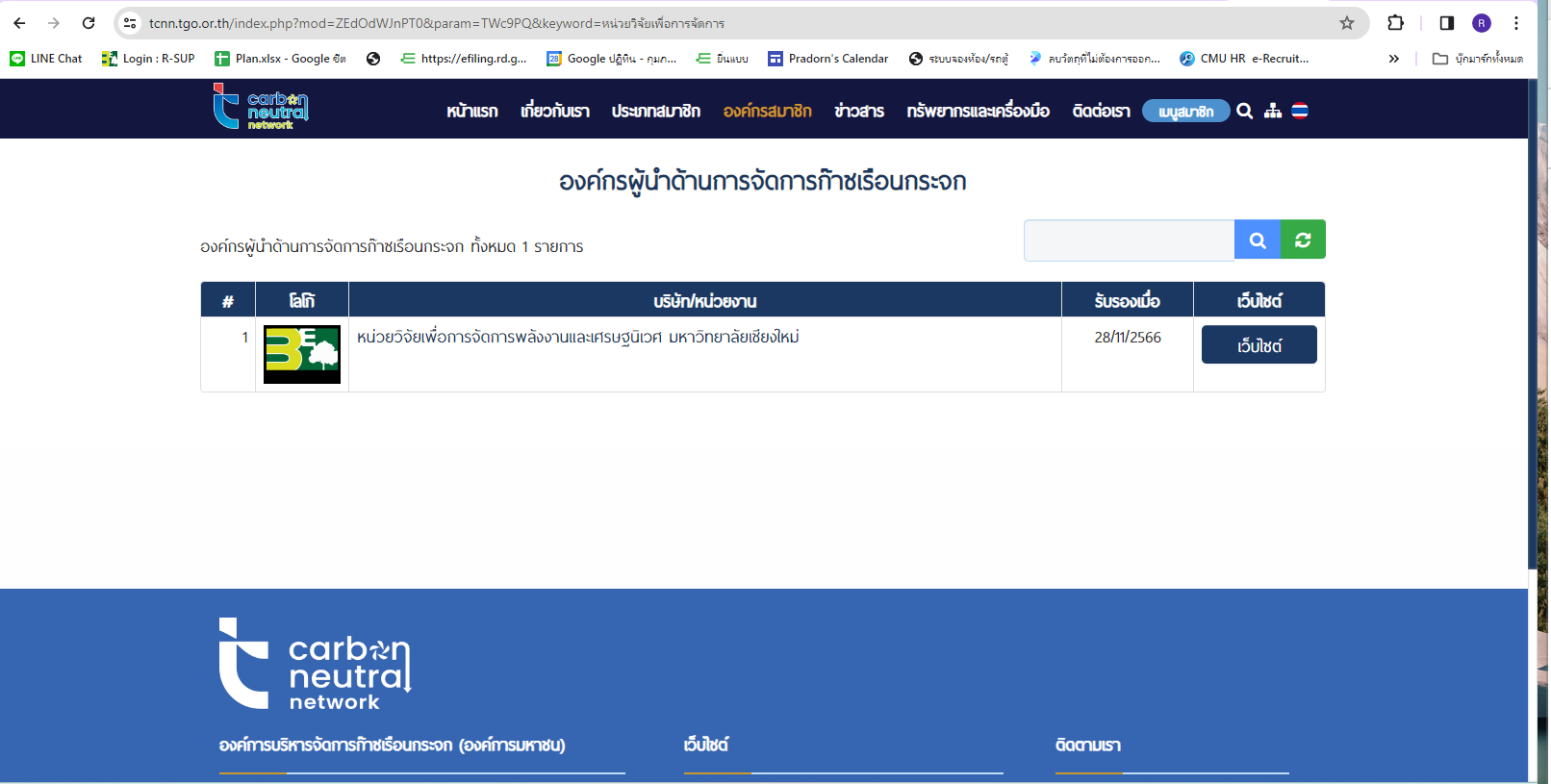☘️ บัดนี้ หน่วยวิจัย3E ได้ผ่านการรับรอง ให้เป็นองค์กรผู้นำด้านการจัดการก๊าซเรือนกระจก (CALO) แล้ว ซึ่งเป็น 1 ใน 98 องค์กรที่ได้รับการรับรองโดยการรับรองจากคณะกรรมการเครือข่ายคาร์บอนนิวทรัลประเทศไทยในการประชุมคณะกรรมการเครือข่ายคาร์บอนนิวทรัลประเทศไทย ครั้งที่ 4/2566 ในวันอังคารที่ 28 พฤศจิกายน 2566 ที่ผ่านมา และได้มีการประกาศขึ้นหน้าเว็บไซต์ TCNN เรียบร้อยแล้ว