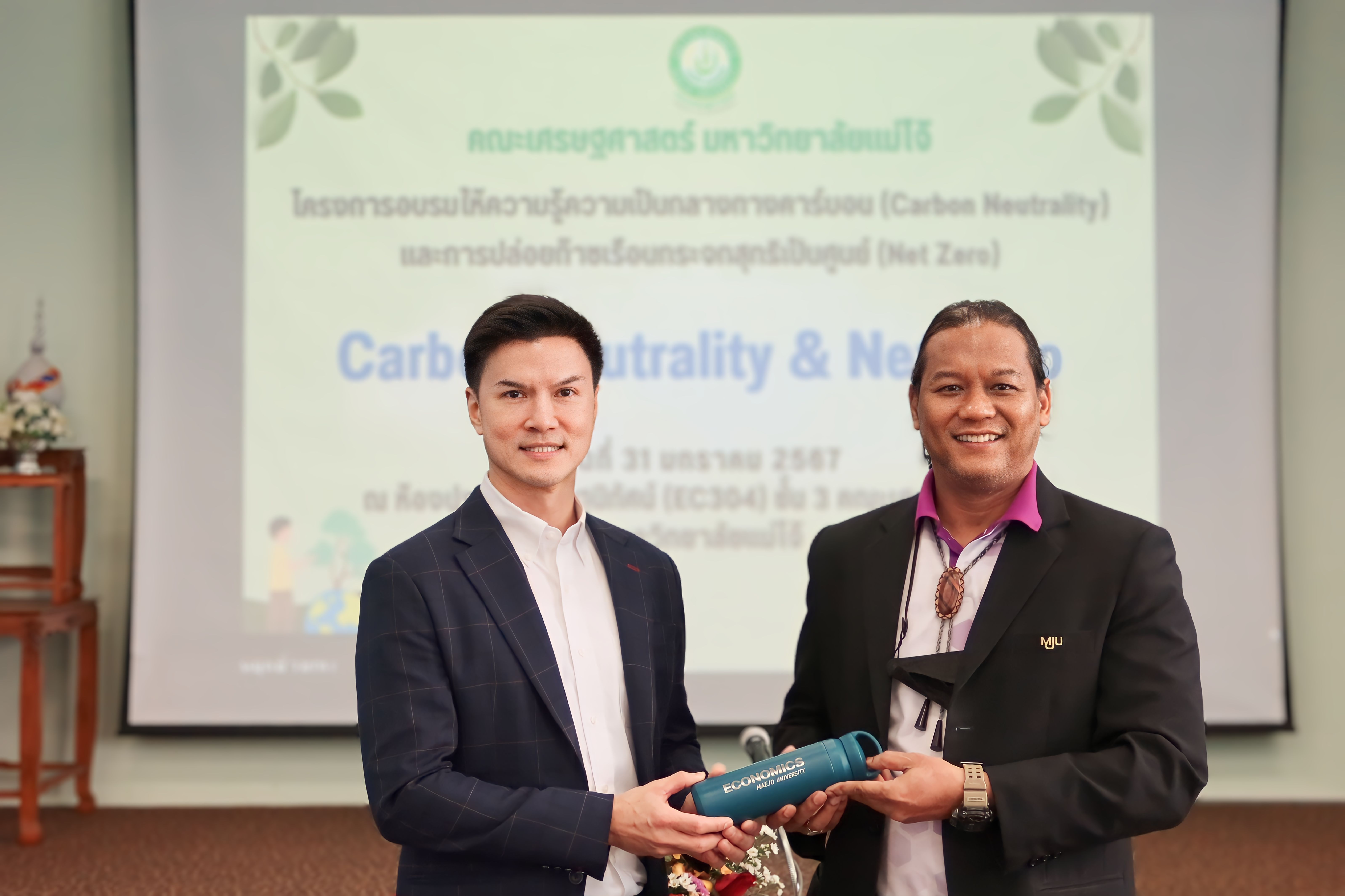 ☘️ วันนี้ (31 มกราคม 2567) รองศาสตราจารย์ ดร.เศรษฐ์ สัมภัตตะกุล รักษาการแทนผู้อำนวยการสำนักบริการวิชาการ (UNISERV) และหัวหน้าหน่วยวิจัยเพื่อการจัดการพลังงานและเศรษฐนิเวศ (3E) พร้อมด้วย ผู้ช่วยศาสตราจารย์ ดร.ณัฐนี วรยศ รองผู้อำนวยการสถาบันวิจัยและพัฒนาพลังงานนครพิงค์ มหาวิทยาลัยเชียงใหม่ ในฐานะผู้เชี่ยวชาญด้านคาร์บอนฟุตพริ้นท์ ร่วมเป็นวิทยากรอบรม หัวข้อ "ความเป็นกลางทางคาร์บอน (Carbon Neutrality) และการปล่อยก๊าซเรือนกระจกสุทธิเป็นศูนย์ (Net Zero)" แก่บุคลากร นักศึกษา เจ้าหน้าที่ คณะเศรษฐศาสตร์ มหาวิทยาลัยแม่โจ้ ณ ห้องประชุมเศรษฐนิทัศน์ (EC304) ชั้น 3 อาคารยรรยง สิทธิชัย คณะเศรษฐศาสตร์ มหาวิทยาลัยแม่โจ้ จังหวัดเชียงใหม่