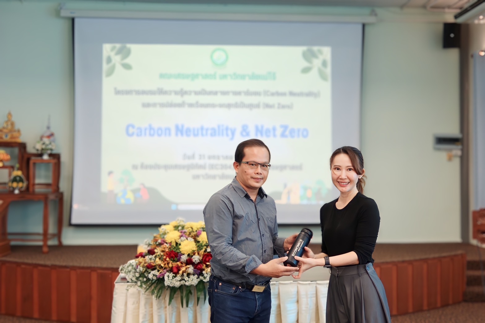 ☘️ โดยมี รศ. ว่าที่ร้อยตรี ดร.สุรชัย กังวล คณบดีคณะเศรษฐศาสตร์ กล่าวต้อนรับวิทยากร และเปิดโครงการ โครงการดังกล่าวมีวัตถุประสงค์ เพื่ออบรมให้ความรู้เกี่ยวกับความเป็นกลางทางคาร์บอน (Carbon Neutrality) และการปล่อยก๊าซเรือนกระจกสุทธิเป็นศูนย์ (Net Zero) ทั้งนี้ยังมีกิจกรรม Workshop โดย ดร.รัตชยุดา กองบุญ รองหัวหน้าหน่วยวิจัยฯ เป็นวิทยากรอบรมเชิงปฏิบัติการในครั้งนี้ด้วย