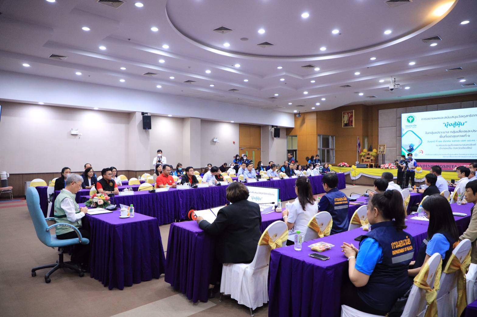 ☘️ ในวันที่ 22 มีนาคม 2567 ณ ห้องประชุมโรงพยาบาลนครพิงค์ จังหวัดเชียงใหม่ นายแพทย์โอภาส การย์กวินพงศ์ ปลัดกระทรวงสาธารณสุข และแพทย์หญิงอัจฉรา นิธิอภิญญาสกุล อธิบดีกรมอนามัย พร้อมด้วย นายแพทย์อุดม อัศวุตมางกุร สาธารณสุขนิเทศก์เขต 9 แพทย์หญิงนงนุช ภัทรอนันต์นพ ผู้ช่วยอธิบดีกรมอนามัย และผู้อำนวยการศูนย์อนามัยที่ 1 เชียงใหม่ นายแพทย์ปกรณ์ ตุงคะเสรีรักษ์ ผู้ช่วยอธิบดีกรมอนามัย ผู้อำนวยการศูนย์อนามัยที่ 10 อุบลราชธานี และผู้อำนวยการสำนักงานสาธารณสุขจังหวัดในเขตสุขภาพที่ 1 ร่วมประชุมการขยายผลและการสนับสนุนวัสดุสาธิตการใช้งาน 'มุ้งสู้ฝุ่น'ในงานพิธีมอบชุดป้องกันฝุ่นละอองขนาดเล็ก PM2.5 "มุ้งสู้ฝุ่น" เขตสุขภาพที่ 1 ซึ่งในงานได้มีการมอบอุปกรณ์ในการจัดทำมุ้งสู่ฝุ่นสำหรับสำนักงานสาธารณสุขจังหวัดกว่า 300 ชุด เพื่อขับเคลื่อนโครงการพัฒนาความเข้มแข็งชุมชนเฝ้าระวังมลพิษอากาศและการปรับตัวด้านสุขภาพต่อการเปลี่ยนแปลงสภาพภูมิอากาศ และทั้งหมดได้ร่วมชมนิทรรศการสาธิตการทำมุ้งลดฝุ่นของศูนย์อนามัยที่ 1 เชียงใหม่ นิทรรศการระบบเฝ้าระวังสุขภาพหนึ่งเดียว “ผ่อดีดี” โดยศูนย์เฝ้าระวังสุขภาพหนึ่งเดียว มหาวิทยาลัยเชียงใหม่ และการจัดแสดงเครื่องตรวจวัดฝุ่นละอองขนาดเล็ก DustBoy รุ่นต่าง ๆ ซึ่งได้ติดตั้งในเขตสุขภาพที่ไปแล้วมากกว่า 400 จุด และเผยแพร่ข้อมูลเป็นสาธารณะผ่านเว็บไซต์ CMUCCDC และแอปพลิเคชัน AQIC รวมถึงได้เชื่อมโยงข้อมูลเพื่อนำใช้ในการแจ้งเตือนเครือข่ายท้องถิ่นในระบบเฝ้าระวังสุขภาพหนึ่งเดียว ซึ่งทางศูนย์อนามัยที่ 1 ใช้ขับเคลื่อนการดำเนินงานเฝ้าระวัง สื่อสารความเสี่ยง แก้ไขปัญหาฝุ่นควัน ในพื้นที่ 8 จังหวัดภาคเหนือ ในการนี้ ปลัดกระทรวงสาธารณสุขและอธิบดีกรมอนามัยได้ชมการสาธิตการใช้งานระบบวัดฝุ่นแบบเคลื่อนที่ด้วยรถมอเตอร์ไซด์ไฟฟ้า ซึ่งเป็นการส่งเสริมการใช้ยานพาหนะที่ช่วยลดการปล่อย PM2.5 จากการจราจรที่ถือเป็นแหล่งกำเนิดฝุ่น