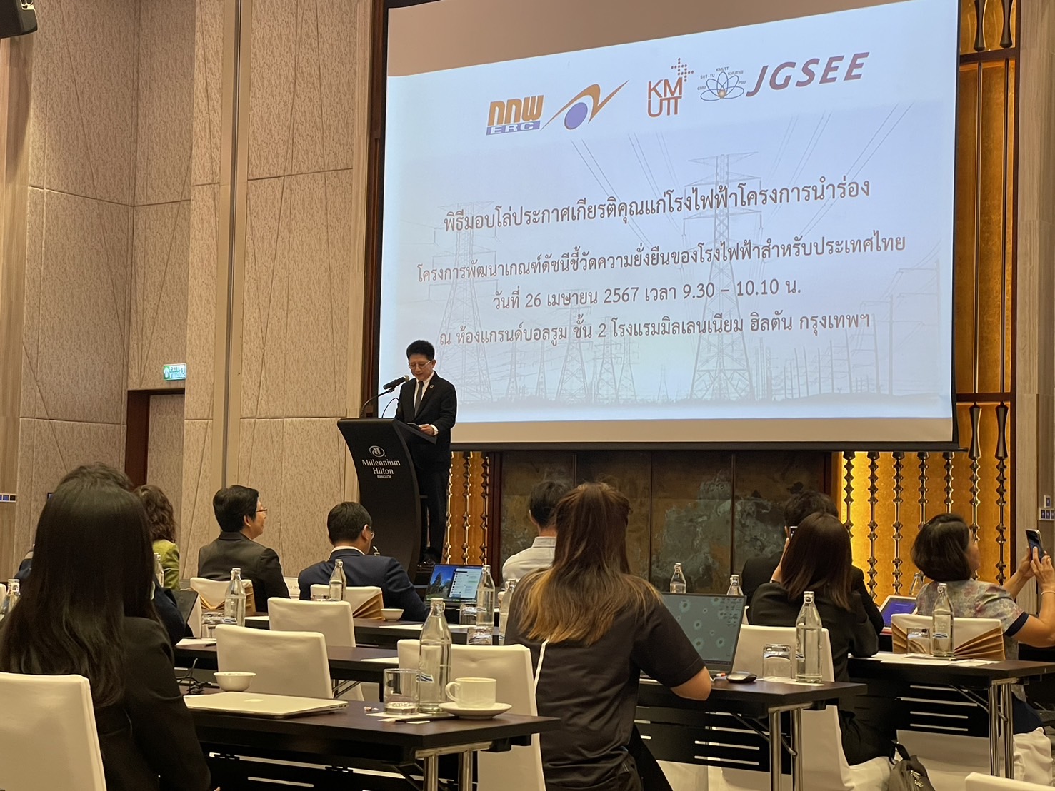 ภายใต้โครงการพัฒนาเกณฑ์ดัชนีชี้วัดความยั่งยืนของโรงไฟฟ้าสำหรับประเทศไทย จัดขึ้นในห้องแกรนด์บอลรูม ชั้น 2 ณ โรงแรมมิลเลนเนียม ฮิลตัน กรุงเทพฯ