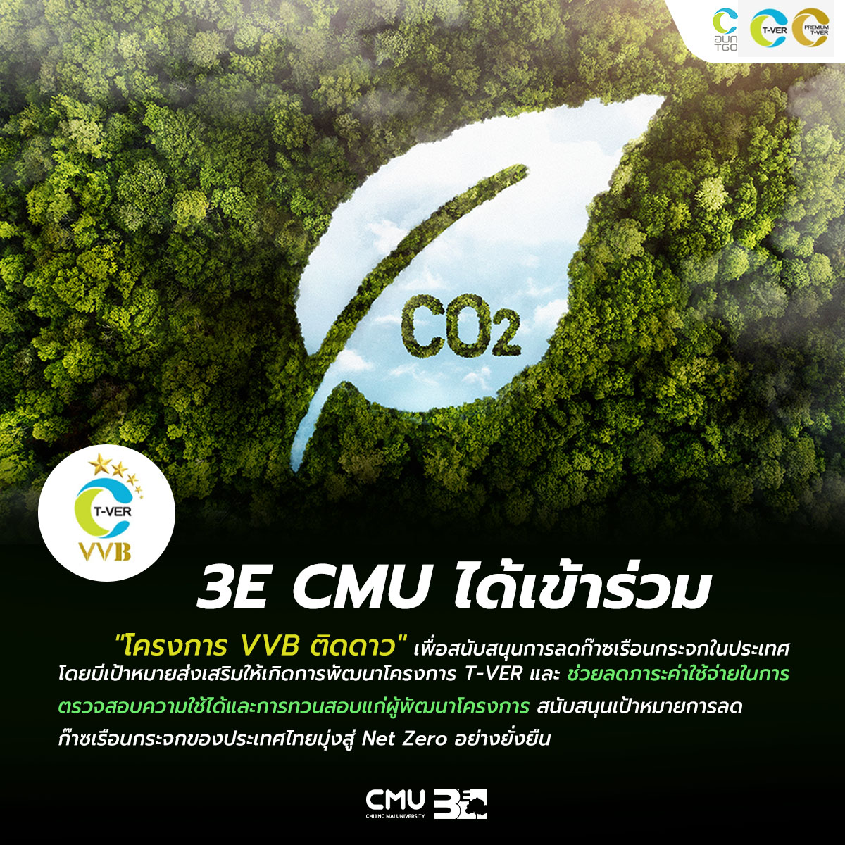 หน่วยวิจัยเพื่อการจัดการฯ (3E) ได้เข้าร่วม "โครงการ VVB ติดดาว" เพื่อสนับสนุนการลดก๊าซเรือนกระจกในประเทศ โดยมีเป้าหมายส่งเสริมให้เกิดการพัฒนาโครงการ T-VER