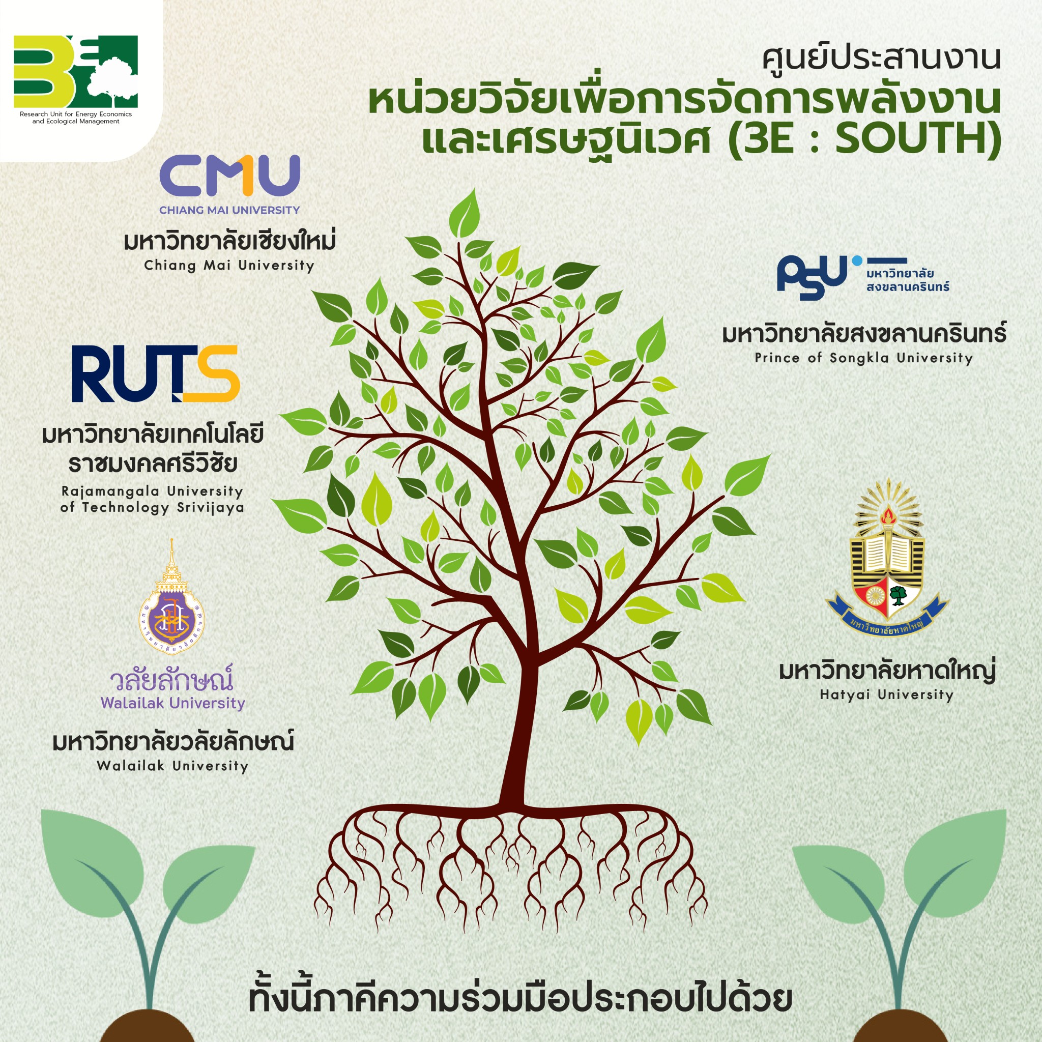 ภายในงาน ศูนย์ 3E-South ได้นำเสนอผลงานวิจัยและเทคโนโลยีที่เกี่ยวข้องกับการจัดการพลังงานและเศรษฐนิเวศ รวมถึงการสนับสนุนภาคธุรกิจขนาดกลางและขนาดย่อม (SMEs) ในการปรับตัวสู่เศรษฐกิจสีเขียวผ่านการลดคาร์บอนฟุตพริ้นท์และพัฒนาความยั่งยืน