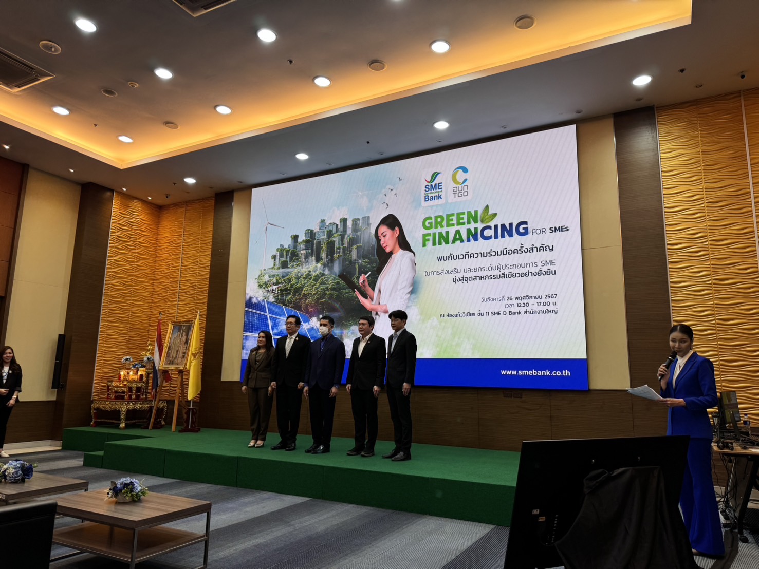วันนี้ 26 พฤศจิกายน 2567 รศ.ดร.เศรษฐ์ สัมภัตตะกุล ผู้อำนวยการสำนักบริการวิชาการ (UNISERV) และหัวหน้าหน่วยวิจัยเพื่อการจัดการพลังงานและเศรษฐนิเวศ (3E) สถาบันวิจัยพหุศาสตร์ มหาวิทยาลัยเชียงใหม่ ได้มอบหมายให้ ผศ.ดร.วิรัช ทวีปรีดา อาจารย์ประจำสาขาวิทยาศาสตร์กายภาพ และ อ.โปรดปราน คำอ่อน อาจารย์คณะวิทยาศาสตร์และเทคโนโลยีอุตสาหกรรม มหาวิทยาลัยสงขลานครินทร เป็นตัวแทนศูนย์ประสานงานหน่วยวิจัยเพื่อการจัดการพลังงานและเศรษฐนิเวศ หรือ 3E-South เข้าร่วมงานและจัดแสดงบูธนิทรรศการในโอกาสสำคัญที่ ธนาคารพัฒนาวิสาหกิจขนาดกลางและขนาดย่อมแห่งประเทศไทย (SME Bank) และ องค์การบริหารจัดการก๊าซเรือนกระจก (องค์การมหาชน) อบก. ได้ลงนามความร่วมมือทางวิชาการ เพื่อส่งเสริมและยกระดับผู้ประกอบการ SMEs มุ่งสู่อุตสาหกรรมสีเขียวอย่างยั่งยืน